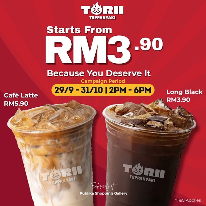 ✨ RM5.90 Cafe Latte or RM3.90 Long Black (2PM – 6PM only)