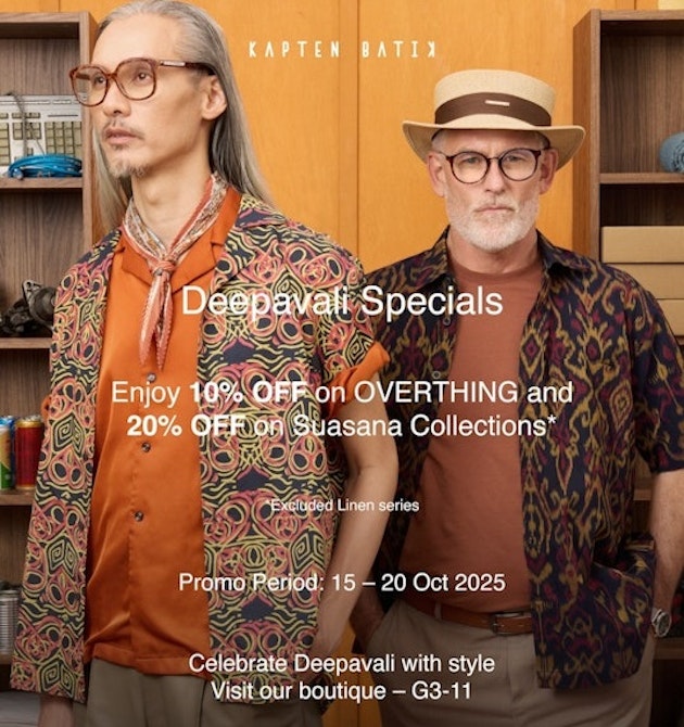 Enjoy up to 20% OFF on the latest OVERTHING and Suasana collections. This exclusive Deepavali promotion runs from 15–20 Oct 2025.
